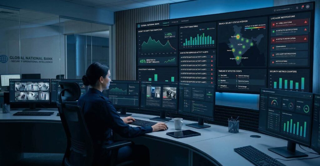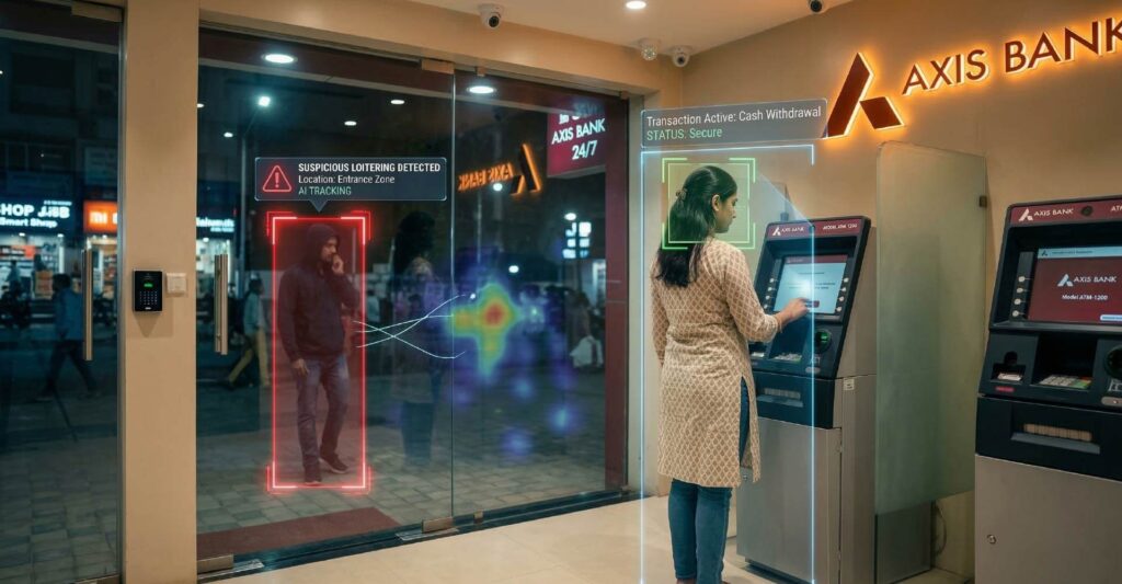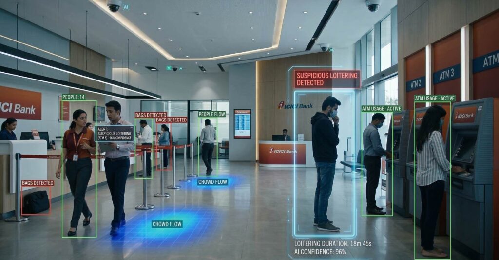 AI surveillance strengthened monitoring of ATM kiosks, teller counters and restricted areas, significantly reducing operational risks.
